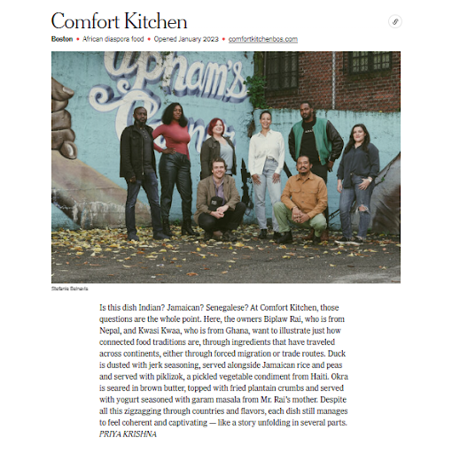 Congratulations to Comfort Kitchen for making The Restaurant List by The New York Times